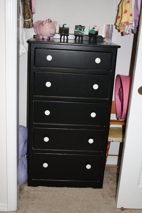 And her dresser in her closet, also painted black. And the wonderful little artwork from her big sister, Belle.